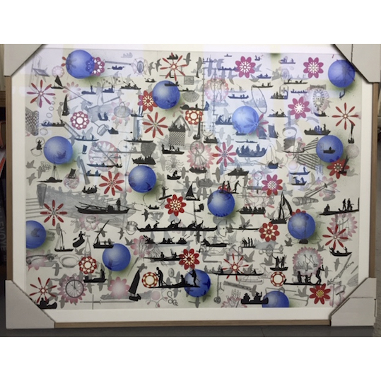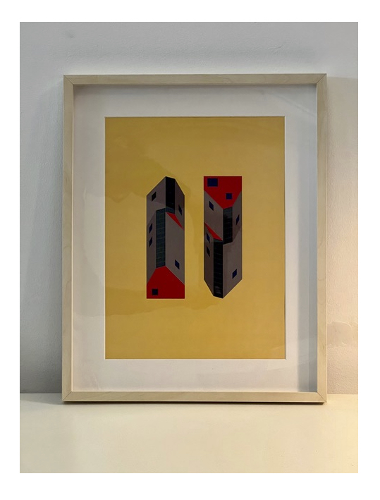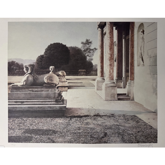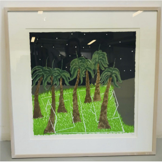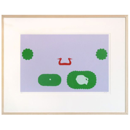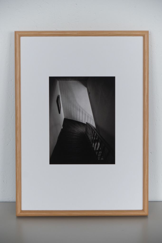 pigment inkt op dik zuurvrij papier. Ingelijst met passe partout en floatglas, gesigneerd op achterzijde print