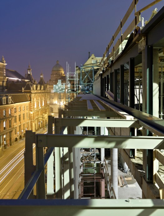 titel: “nachtbeeld” (eigenlijk vroege ochtend), februari 2010 van het DeLaMar Theater in aanbouw.