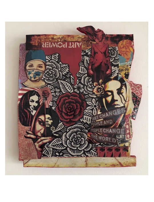 techniek: collage gelakt en bevestigd op hout