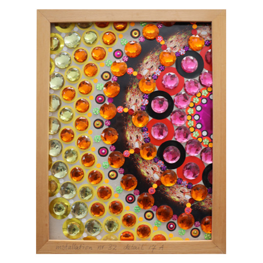 techniek: collage van diverse glimmende materialen en foto’s