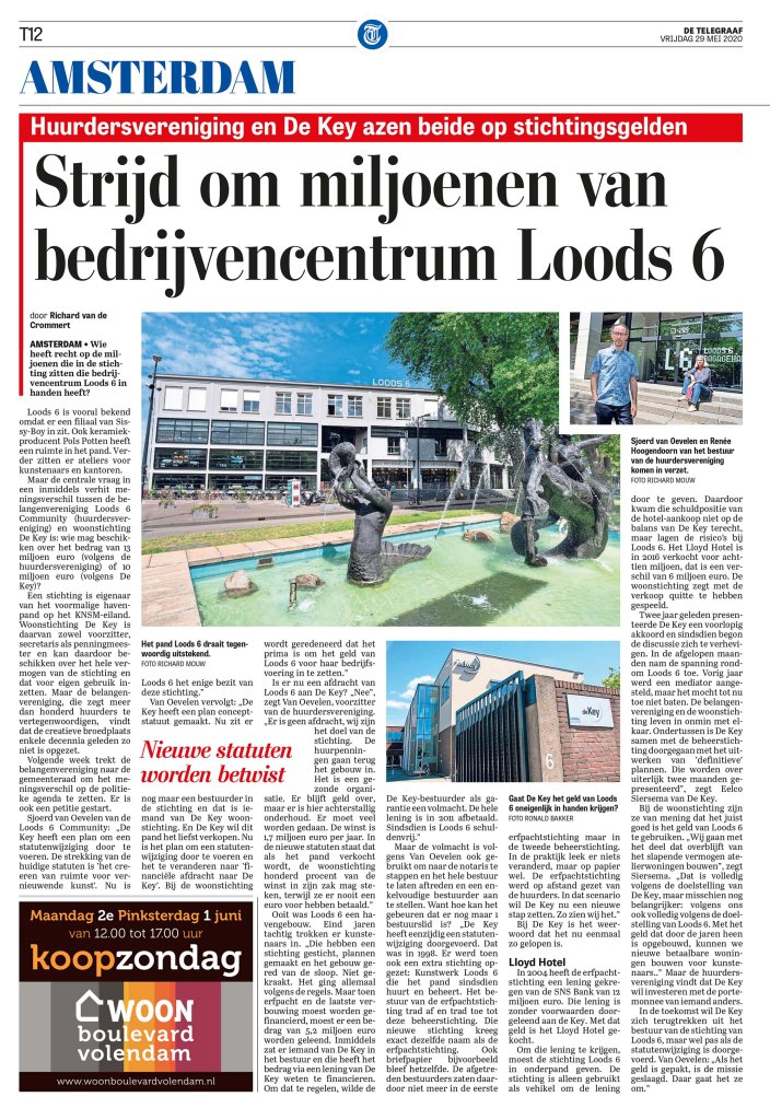 De Amsterdamse woningcorporatie De Key is sinds 1998 de enige bestuurder van de stichting waarin het culturele bedrijfsverzamelgebouw Loods 6 zit. De corporatie heeft nooit geïnvesteerd in het pand. De Key probeert nu een nieuwe doelstelling door te drukken, waarin staat dat de stichting de corporatie financieel moet ondersteunen. De huurders voelen zich bestolen.